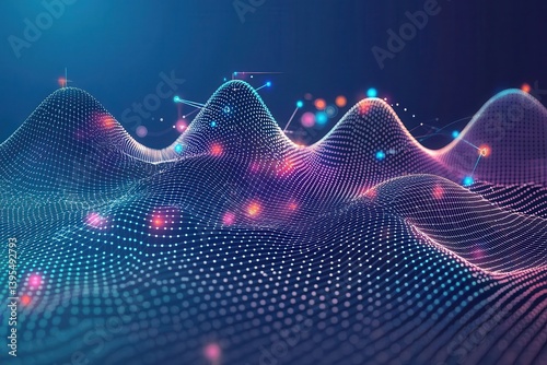 The watermark will not be included on Wall mural.: Abstract digital landscape with colorful dots and waves in motion