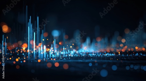 The watermark will not be included on Wall mural.: Abstract digital landscape with glowing particles and vibrant lines representing data and sound wave