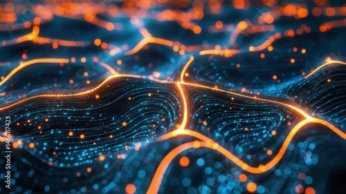 Wall mural abstract digital landscape with glowing particles creating flowing waves and light trails in blue an - Wall murals Wall mural abstract digital landscape with glowing particles creating flowing waves and light trails in blue an - Wall murals