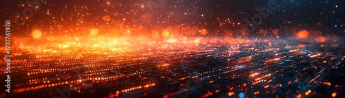 Wall mural : Abstract digital landscape with glowing particles data streams and futuristic light patterns