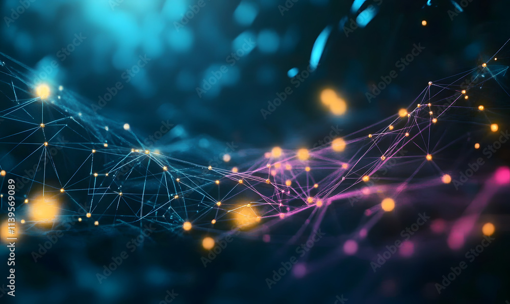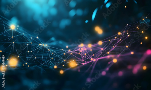 Wall mural abstract digital landscape with interconnected lines and glowing nodes. - Wall murals Wall mural abstract digital landscape with interconnected lines and glowing nodes. - Wall murals