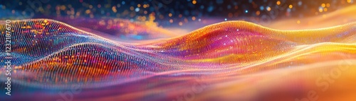The watermark will not be included on Wall mural.: Abstract digital landscape with vibrant colors and dynamic light patterns in a futuristic wave forma