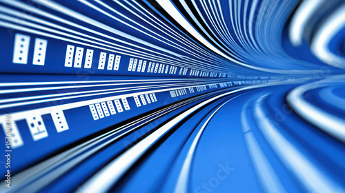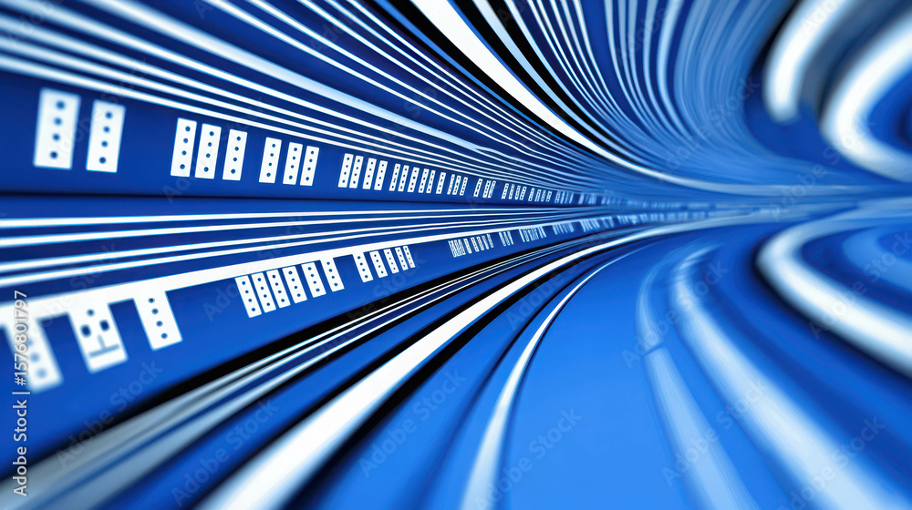 The watermark will not be included on Wall mural.: Abstract digital lines and patterns in blue tones creating a futuristic tunnel effect, representing