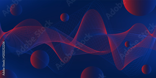 Wall mural abstract digital lines background, modern red and blue gradient flowing wave lines, moving lines des