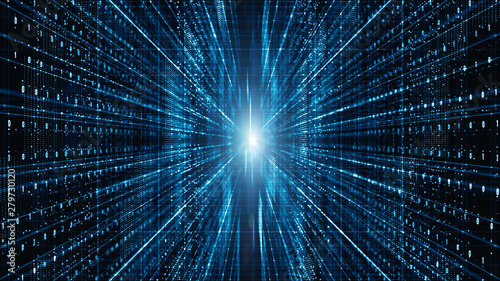 Wall mural abstract digital matrix particles flow, digital data connection, technology concept background. - Wall murals Wall mural abstract digital matrix particles flow, digital data connection, technology concept background. - Wall murals