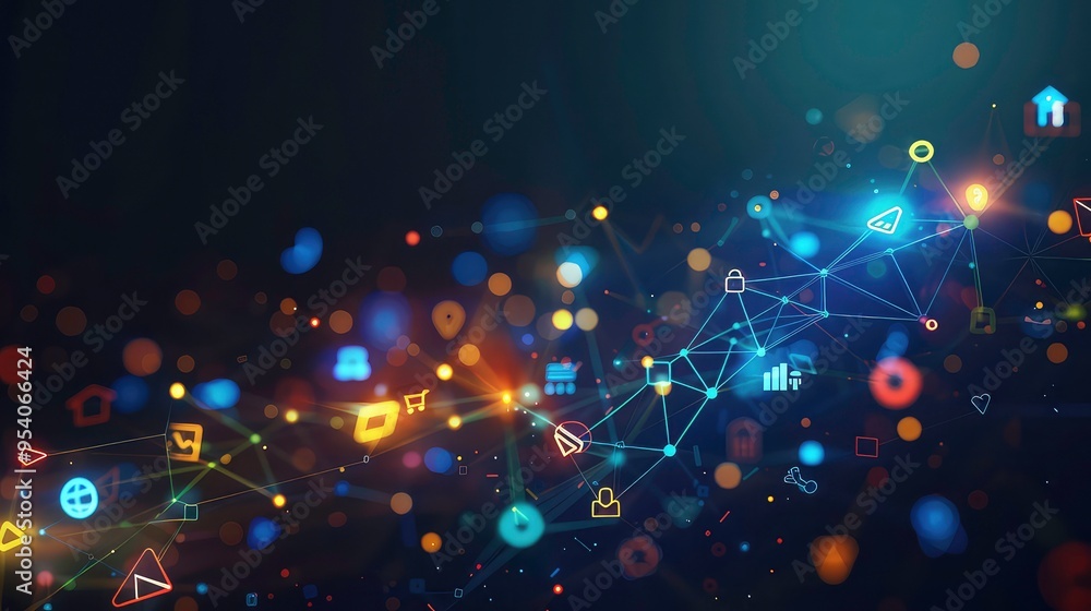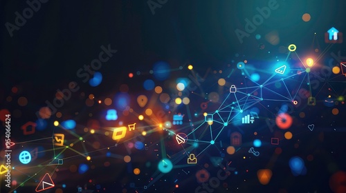 Wall mural abstract digital network background with glowing lights and icons. - Wall murals Wall mural abstract digital network background with glowing lights and icons. - Wall murals