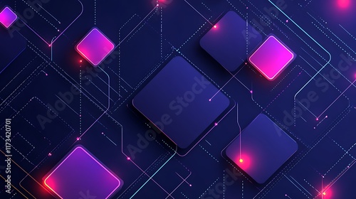 Wall mural : Abstract digital network design with neon squares