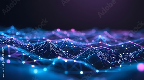 The watermark will not be included on Wall mural.: Abstract digital network landscape with glowing points and lines -