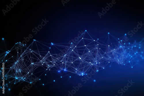 The watermark will not be included on Wall mural.: Abstract digital network of interconnected glowing blue nodes and lines on a dark background conveyi