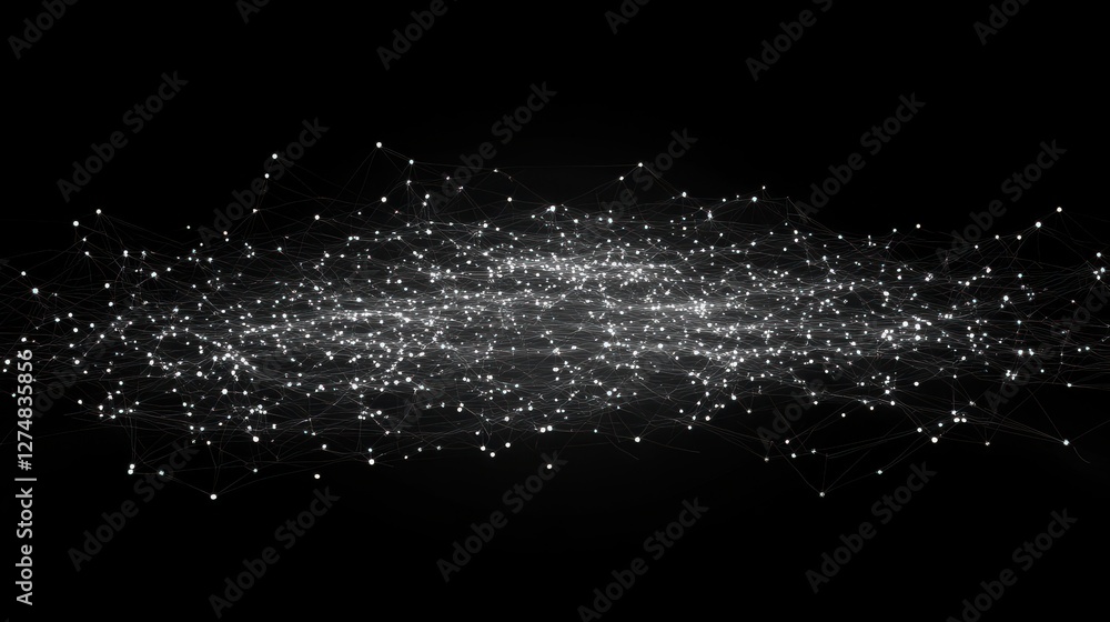Wall mural abstract digital network with bright light points on dark background
