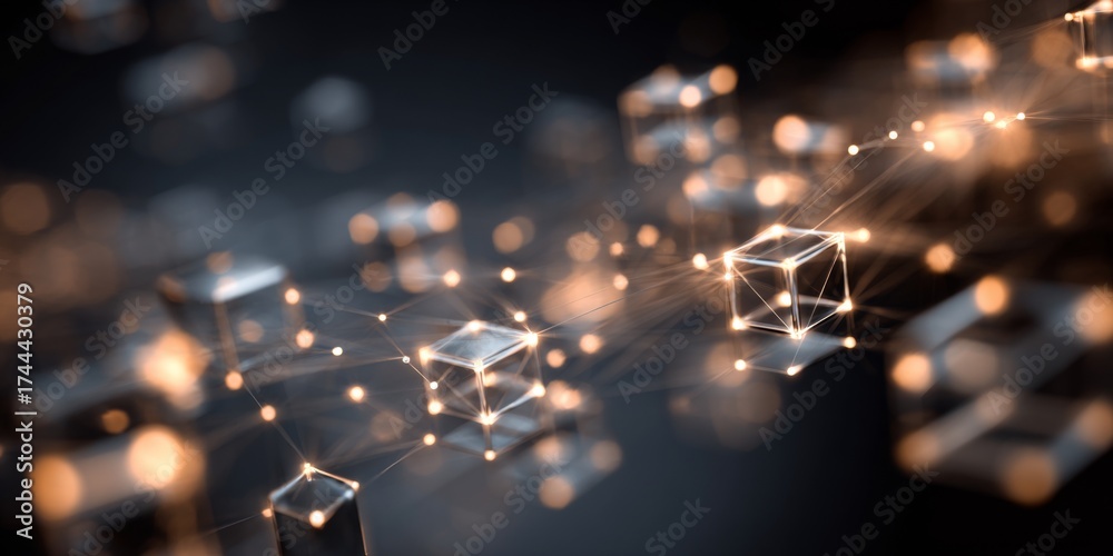 Wall mural abstract digital network with connected cubes representing data and technology concepts - Wall murals Wall mural abstract digital network with connected cubes representing data and technology concepts - Wall murals
