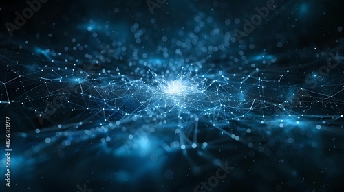 Abstract digital network with connected dots in dark and blue colors - high-tech space design - use foWall mural