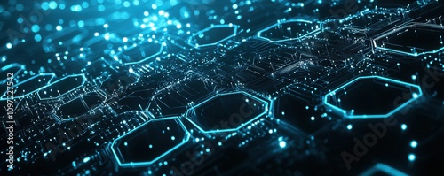 Wall mural : Abstract digital network with glowing hexagonal connections