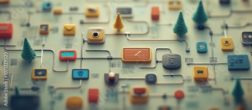 Wall mural abstract digital network with various colorful icons and trees. - Wall murals Wall mural abstract digital network with various colorful icons and trees. - Wall murals