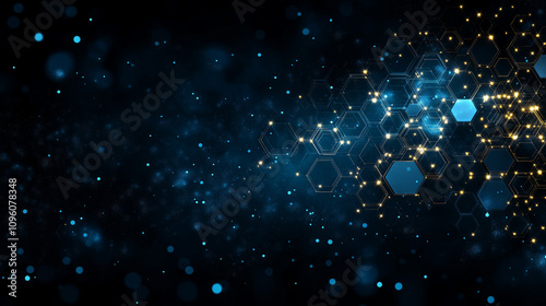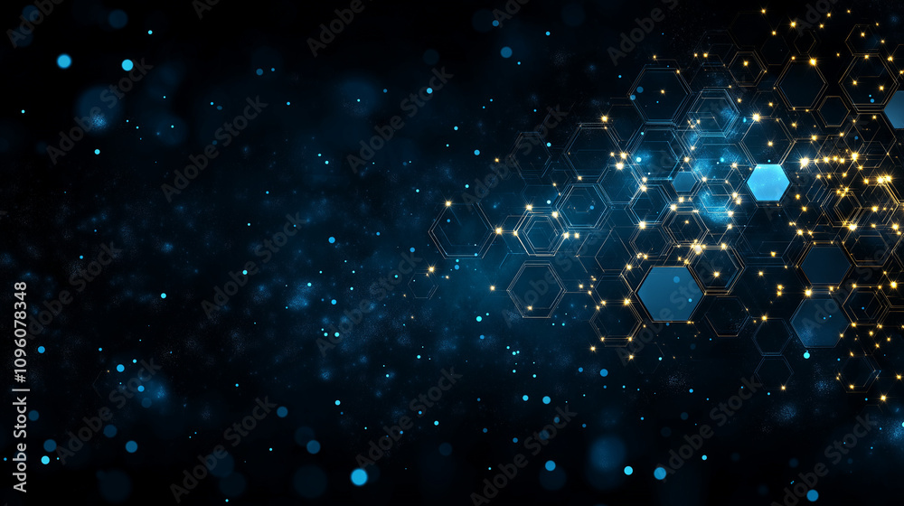 Wall mural abstract digital network: a mesmerizing abstract background of glowing hexagons and bokeh, signifyin - Wall murals Wall mural abstract digital network: a mesmerizing abstract background of glowing hexagons and bokeh, signifyin - Wall murals
