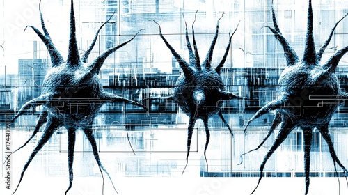 The watermark will not be included on Wall mural.: Abstract digital neurons with pulsating light in a futuristic design