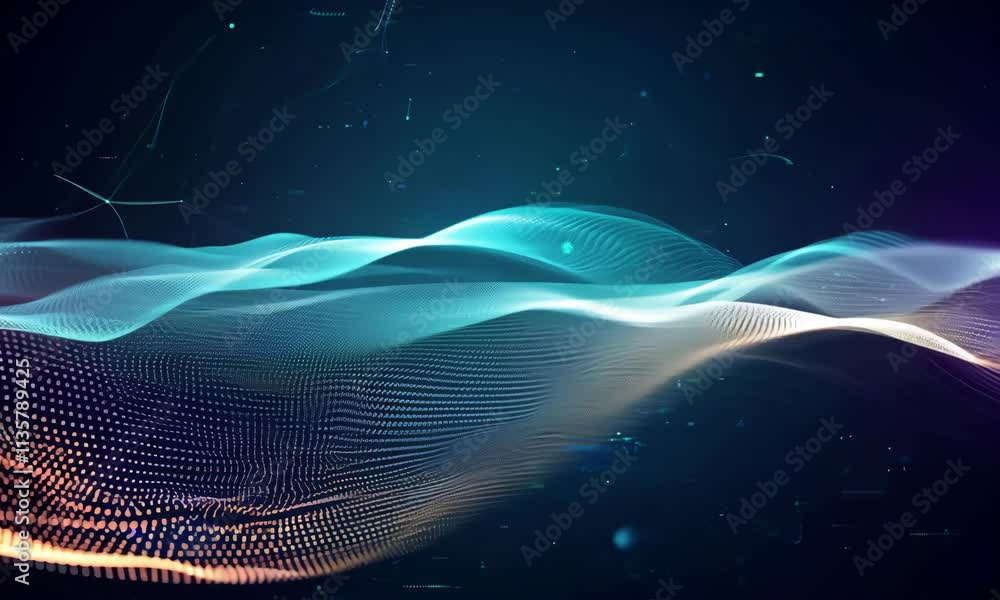 Wall mural abstract digital particle wave and light with flowing small particles dance motion on the wave and l - Wall murals Wall mural abstract digital particle wave and light with flowing small particles dance motion on the wave and l - Wall murals