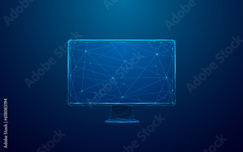 Wall mural : Abstract digital pc monitor in low poly wireframe style - empty screen of the computer in connected g