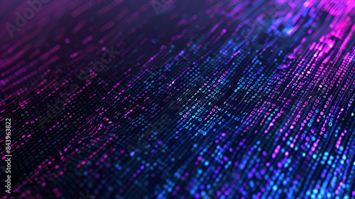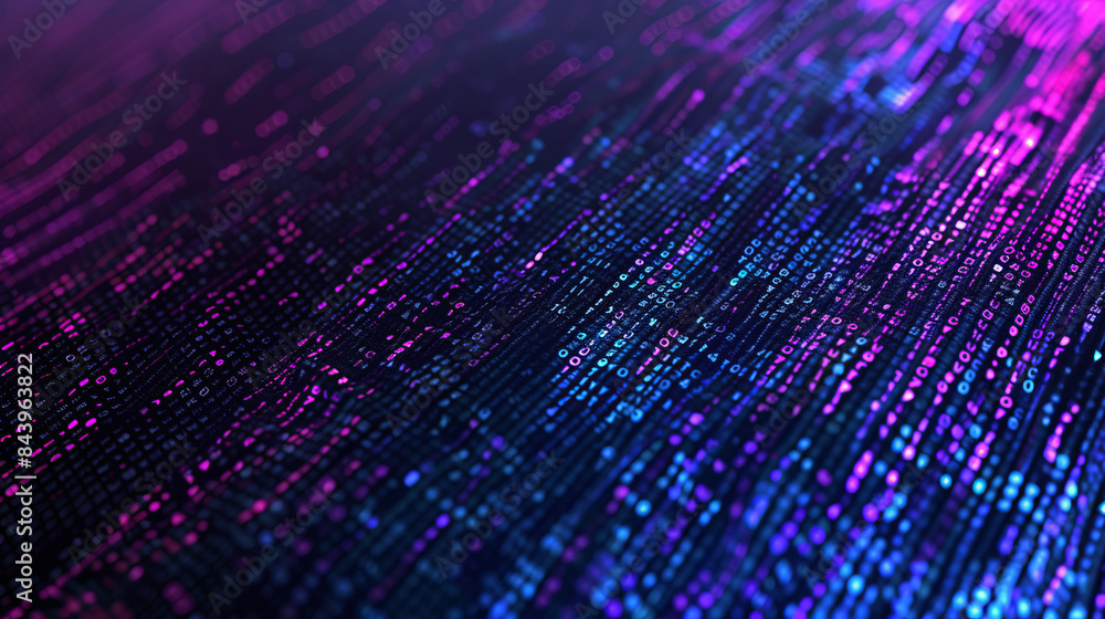 Wall mural : Abstract digital representation of binary code in purple hues, cascading down like rain - the image e