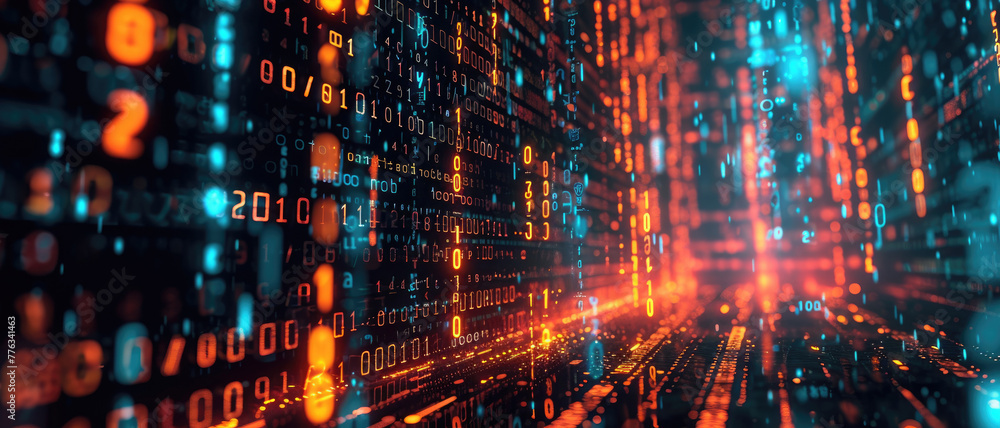Wall mural abstract digital technology background, data pattern and information lights in dark cyber space. con
