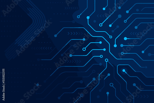 Wall mural : Abstract digital technology background with glowing blue circuit board pattern - futuristic hi-tech c