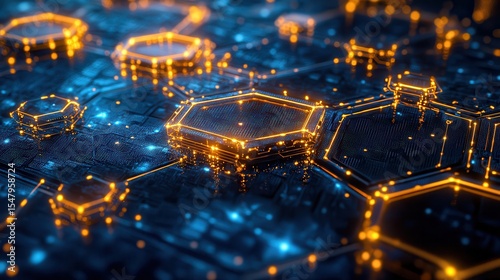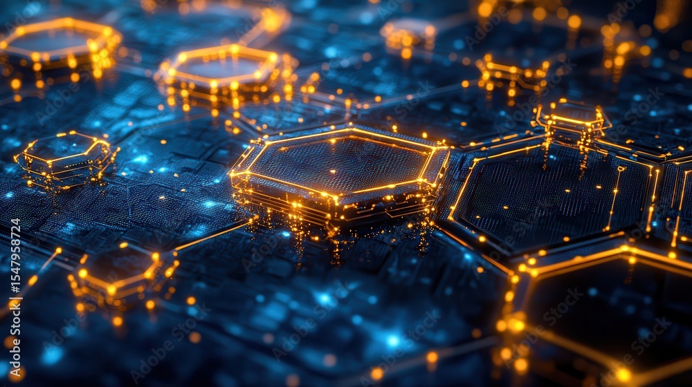 Wall mural : Abstract digital technology background with hexagonal patterns and lights