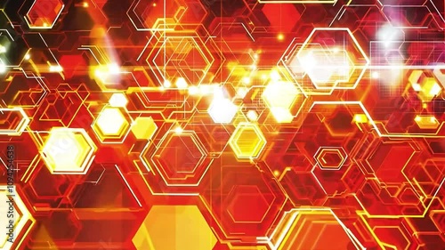 Abstract digital technology background with hexagonal shapes and glowing lightsWall mural