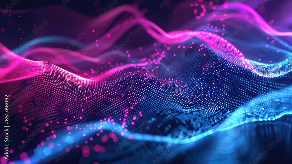 Abstract digital technology background with holographic elements and data streamsWall mural