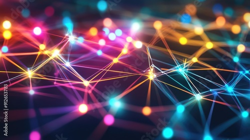 The watermark will not be included on Wall mural.: Abstract digital technology background with network colorful connection lines