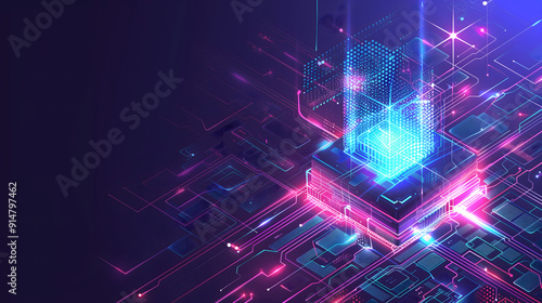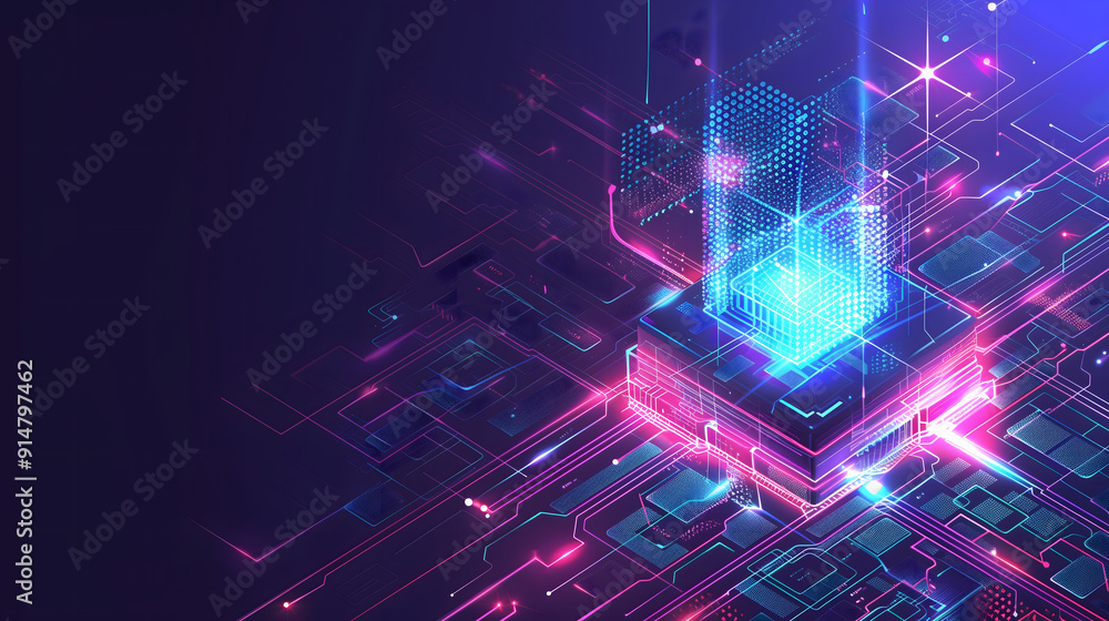 The watermark will not be included on Wall mural.: Abstract digital technology background - isometric ai chip with ai hologram with circuit tech bg - con