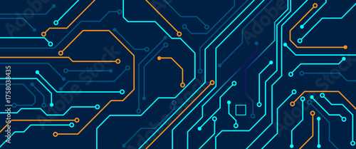 Wall mural abstract digital technology futuristic internet network speed connection blue and orange background.