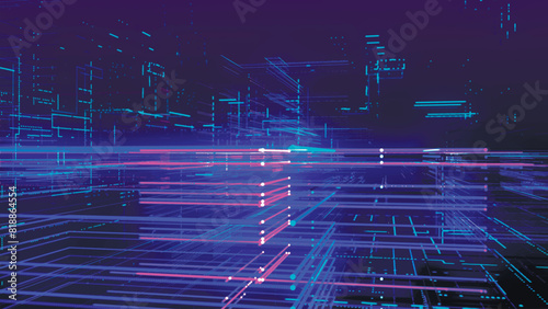 Wall mural : Abstract digital technology tunnel - abstract futuristic sci-fi tunnel with particles and lines mesh -