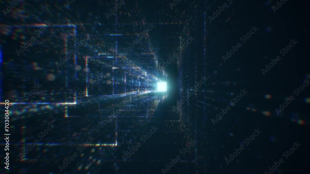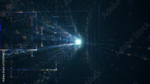Wall mural : Abstract digital tunnel in cyberspace consisting of particles - virtual space consisting of a bright