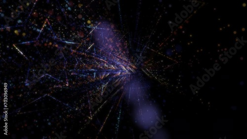 Wall mural : Abstract digital tunnel in cyberspace consisting of particles - virtual space consisting of a bright