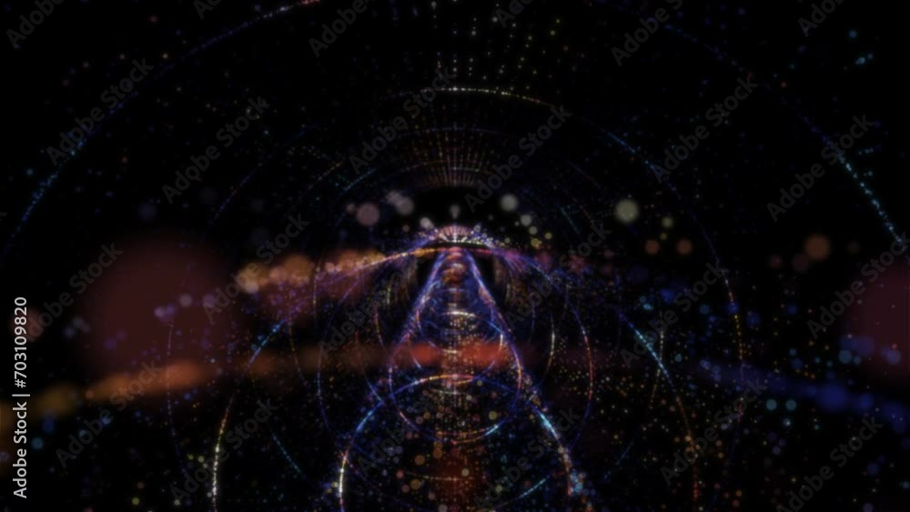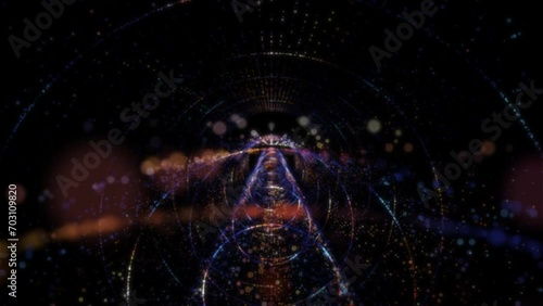 Wall mural abstract digital tunnel into virtual space consisting of a bright stream of particles