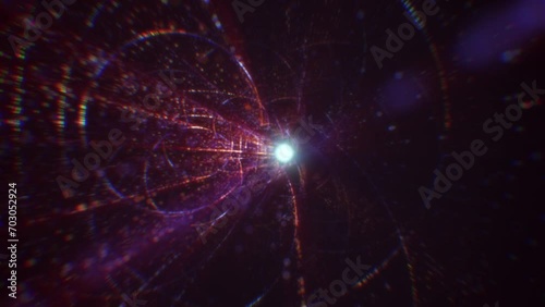 Wall mural abstract digital tunnel into virtual space consisting of a bright stream of particles