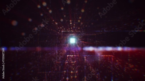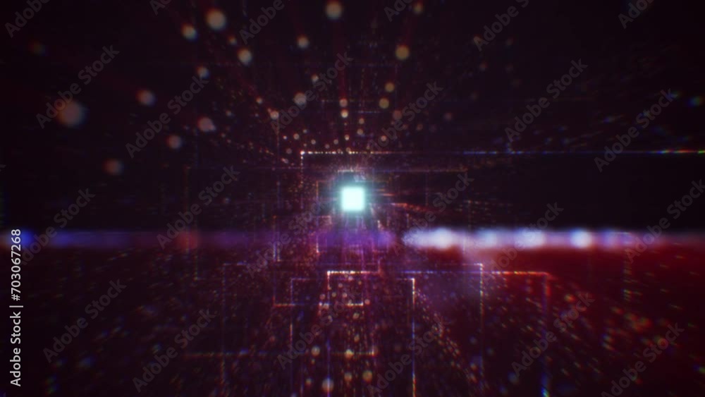 Wall mural abstract digital tunnel into virtual space consisting of a bright stream of particles