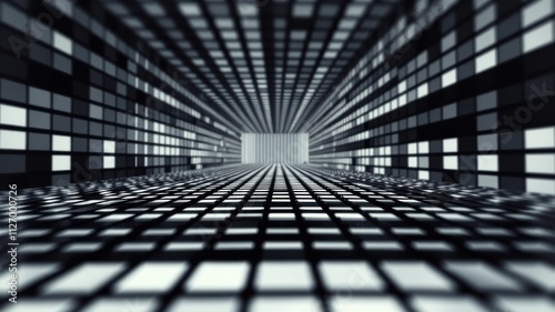 The watermark will not be included on Wall mural.: Abstract digital tunnel of illuminated squares and rectangles