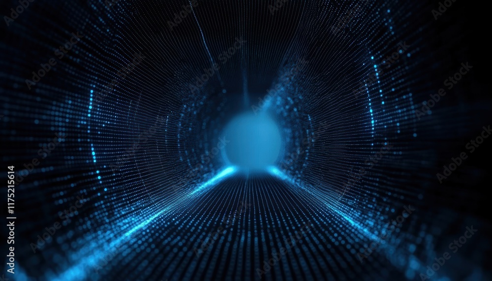 Wall mural : Abstract digital tunnel with glowing blue particles, representing data and technological advancement