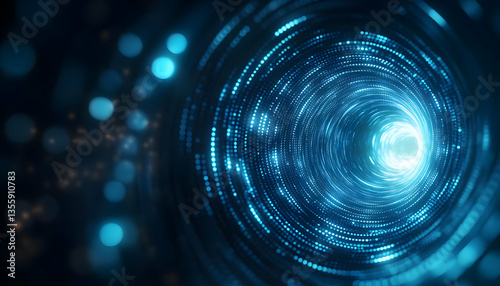 Wall mural abstract digital tunnel with glowing particles, creating an immersive futuristic atmosphere, ideal f