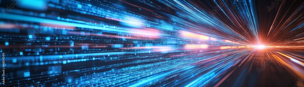 Wall mural abstract digital tunnel with light streaks and data flow
