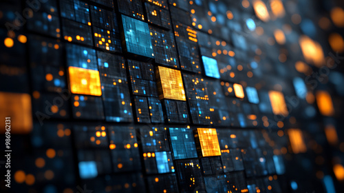 Wall mural abstract digital wall with colorful glowing squares and rectangles creating a futuristic technology  - Wall murals Wall mural abstract digital wall with colorful glowing squares and rectangles creating a futuristic technology - Wall murals