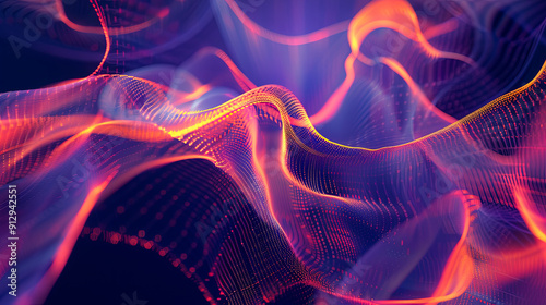 Wall mural : Abstract digital wave background glowing particles digital data flow technology concept cyber securi