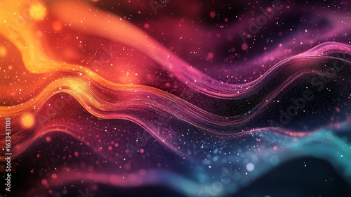 Wall mural : Abstract digital wave background with flowing futuristic lines and dynamic particle effects in vibra