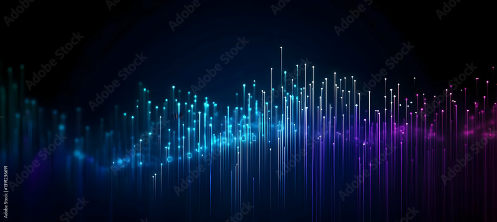 Wall mural : Abstract digital wave of colorful light particles on a dark background, creating a sense of dynamic