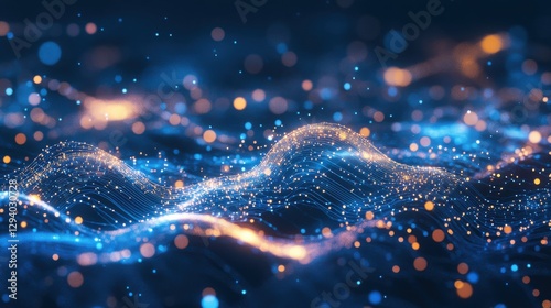 Wall mural abstract digital wave with colorful bokeh and light particles