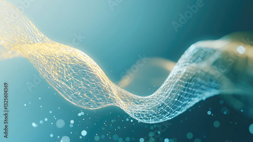 Wall mural abstract digital wave with glowing particles and mesh structure