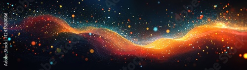 Abstract digital wave with vibrant colors and sparkling particles on a dark backgroundWall mural