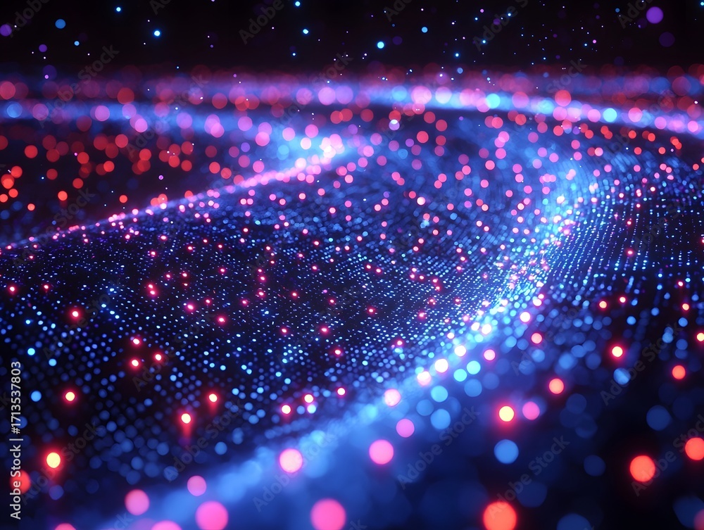 Abstract digital waves of luminous blue and red particles flowing to form a dynamic futuristic netwoWall mural