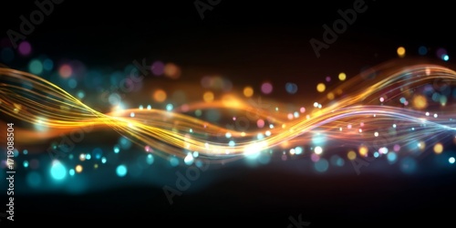 Wall mural : Abstract digital waves with bright bokeh lights and vibrant color gradients for background and wallp